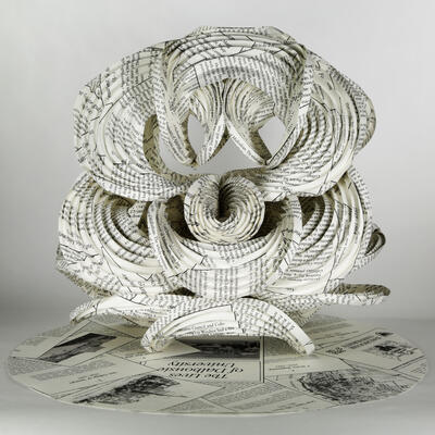 When folded along curved creases, paper shapes itself into a natural equilibrium form. These equilibria are poorly understood, especially for curved creases. We are exploring what shapes are possible in this genre of self-folding origami, with applications to deployable structures, manufacturing, and self-assembly. This transformation of flat paper into swirling surfaces creates sculpture that feels alive.