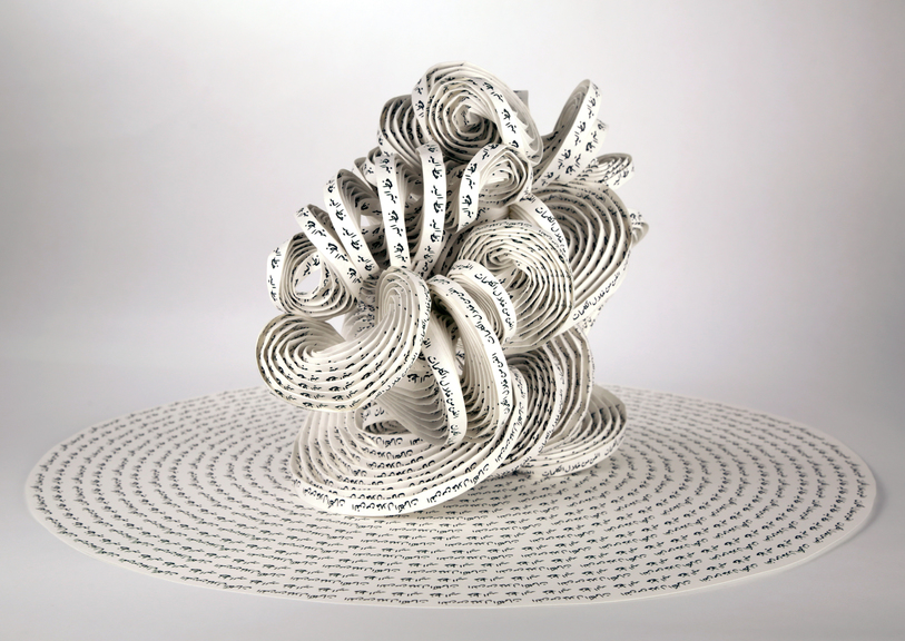 The third folded-paper sculpture is in Arabic, in the Ruqʿah calligraphic