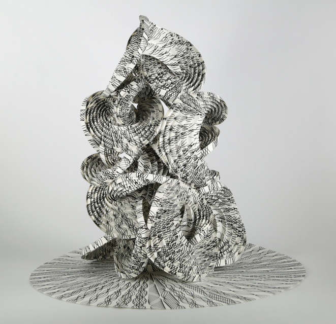 ” (2017), Mi-Teintes watercolor paper, 9" × 9" × 15" high: