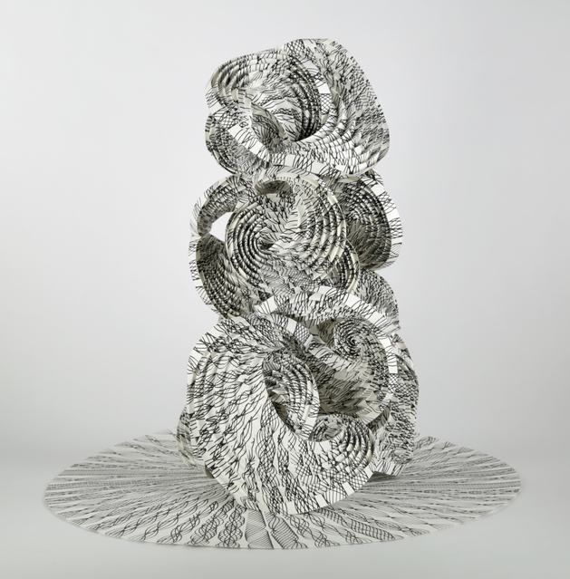 ” (2017), Mi-Teintes watercolor paper, 9" × 9" × 15" high: