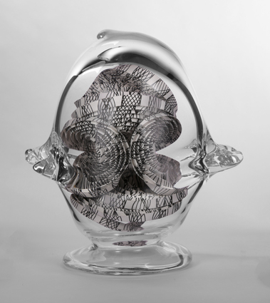” (2016), Mi-Teintes watercolor paper and hand-blown glass, 8" × 5" × 10" high: