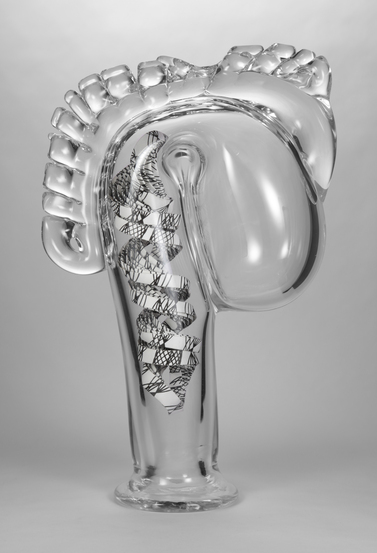 [H0382] Mi-Teintes watercolor paper and hand-blown glass, 3" × 8" × 13" high (2017):
