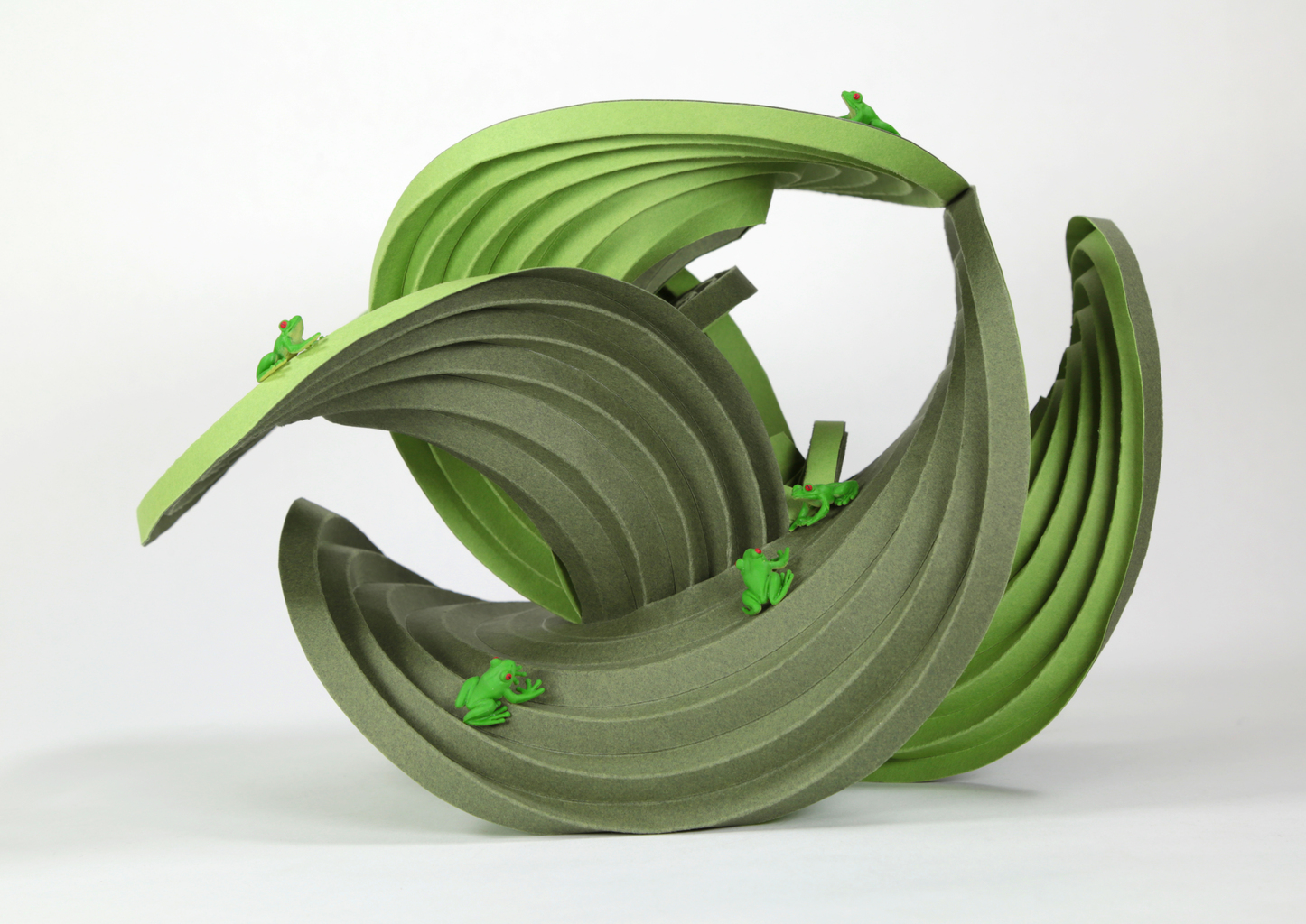 [0251F] Mi-Teintes watercolor paper and vinyl frogs, 11" × 8" × 8" high (2015):