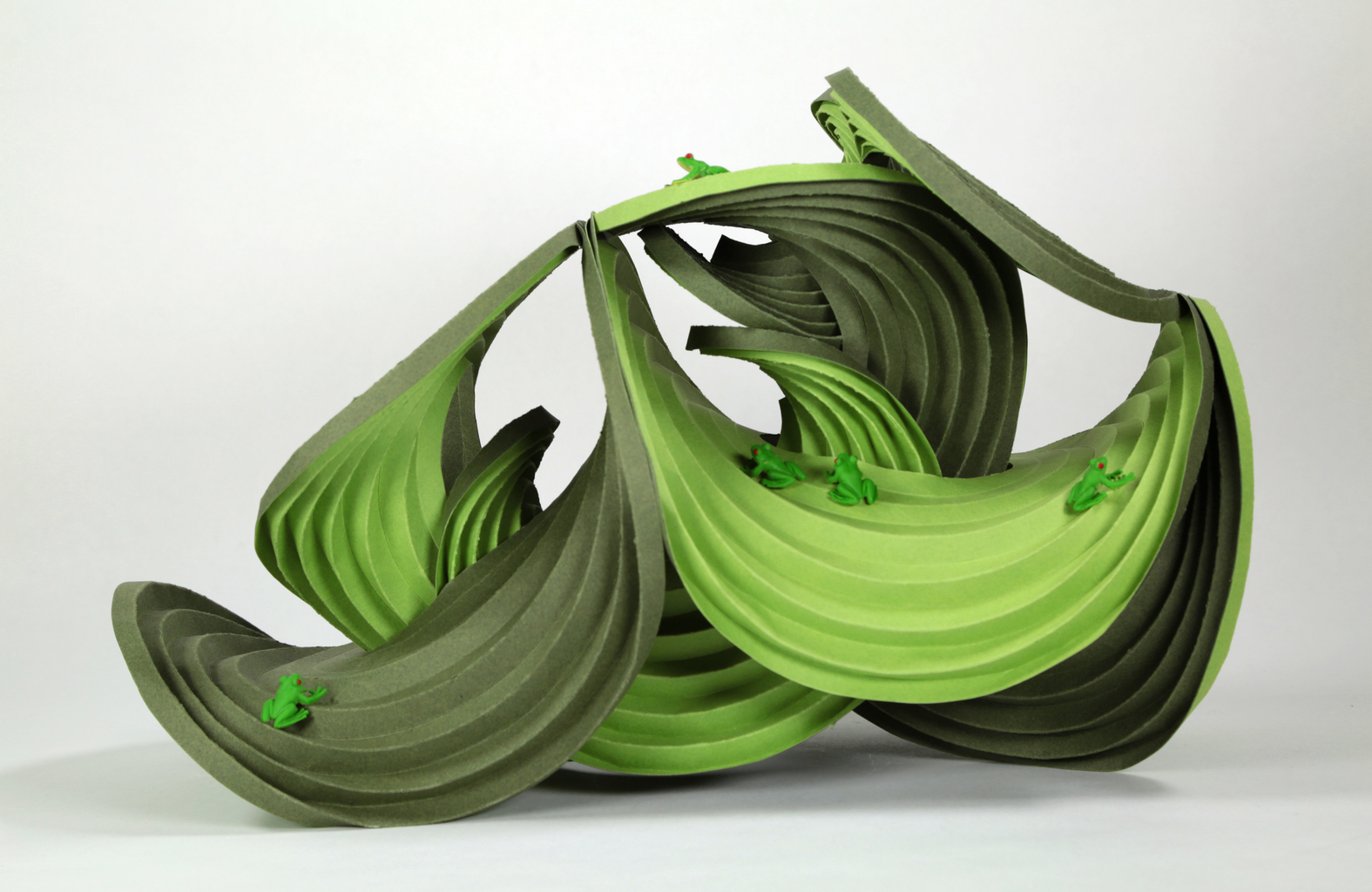 [0282F] Mi-Teintes watercolor paper and vinyl frogs, 9" × 15" × 11" high (2015):