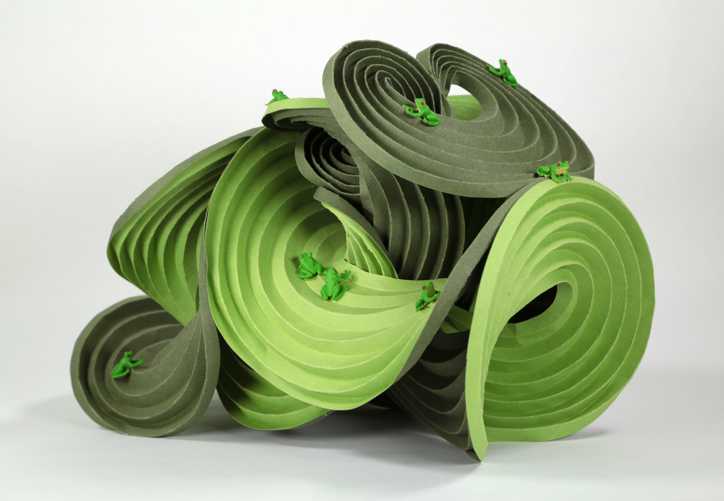 [0282F] Mi-Teintes watercolor paper and vinyl frogs, 9" × 15" × 11" high (2015):