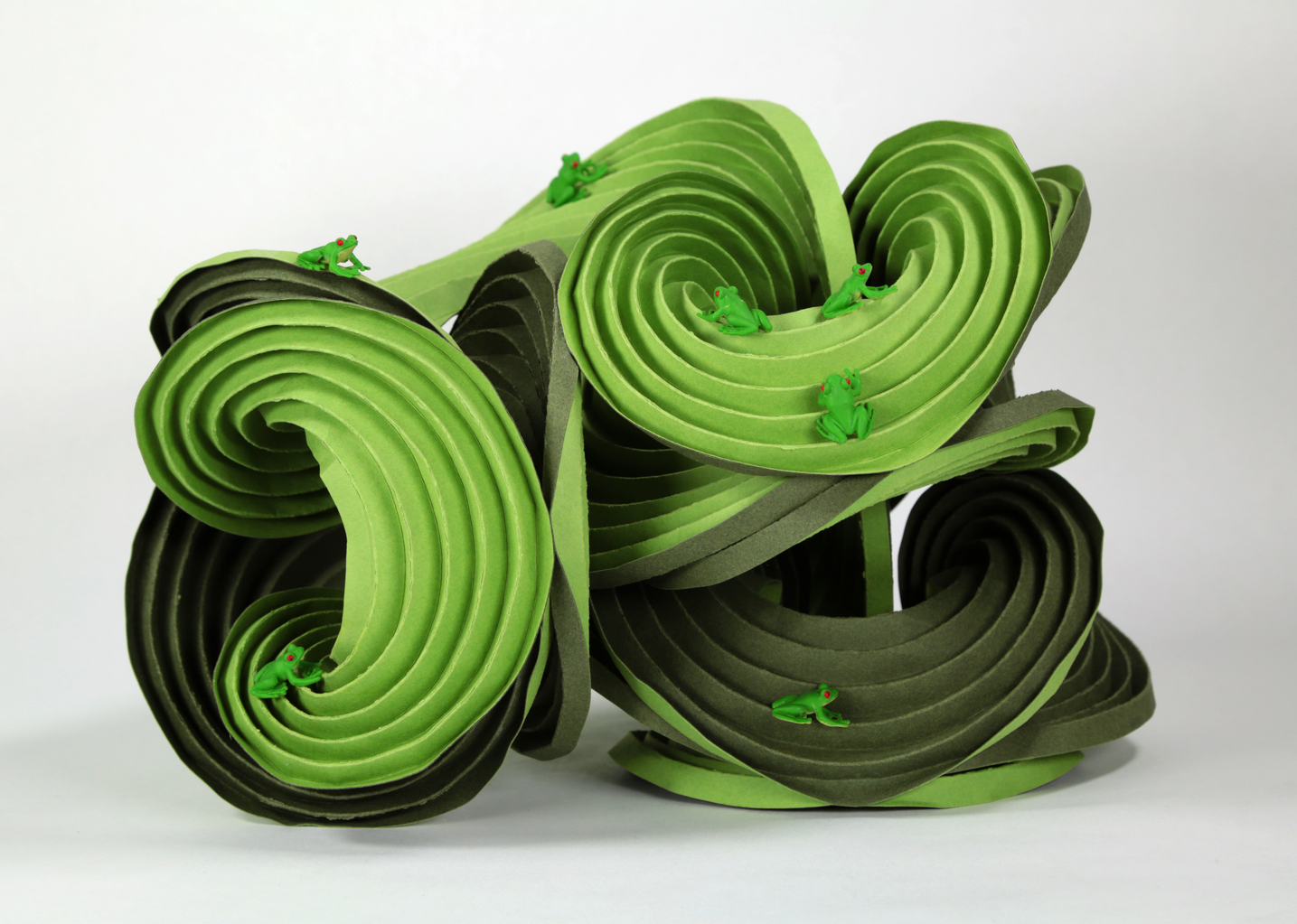 [0339F] Mi-Teintes watercolor paper and vinyl frogs, 11" × 11" × 9" high (2015):