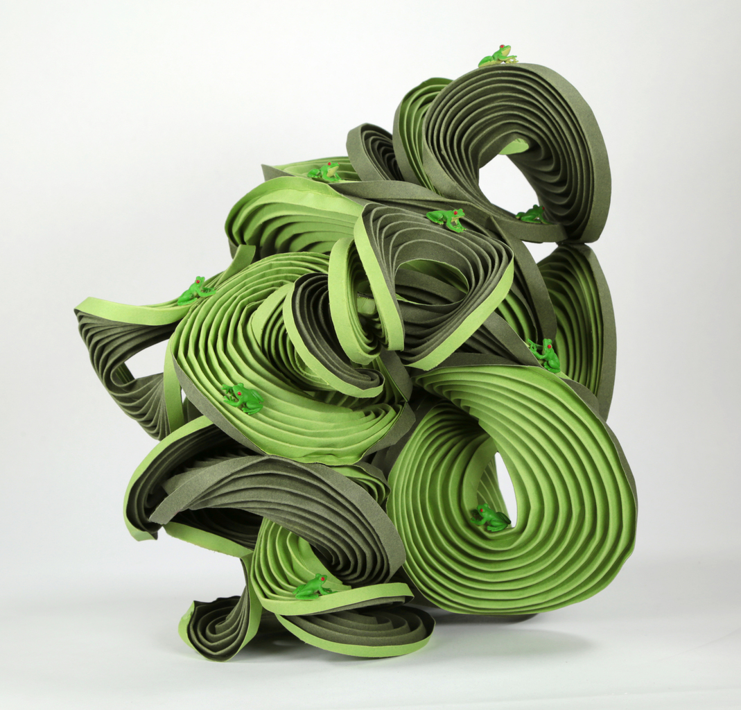 [0413F] Mi-Teintes watercolor paper and vinyl frogs, 14" × 11" × 11" high (2015):