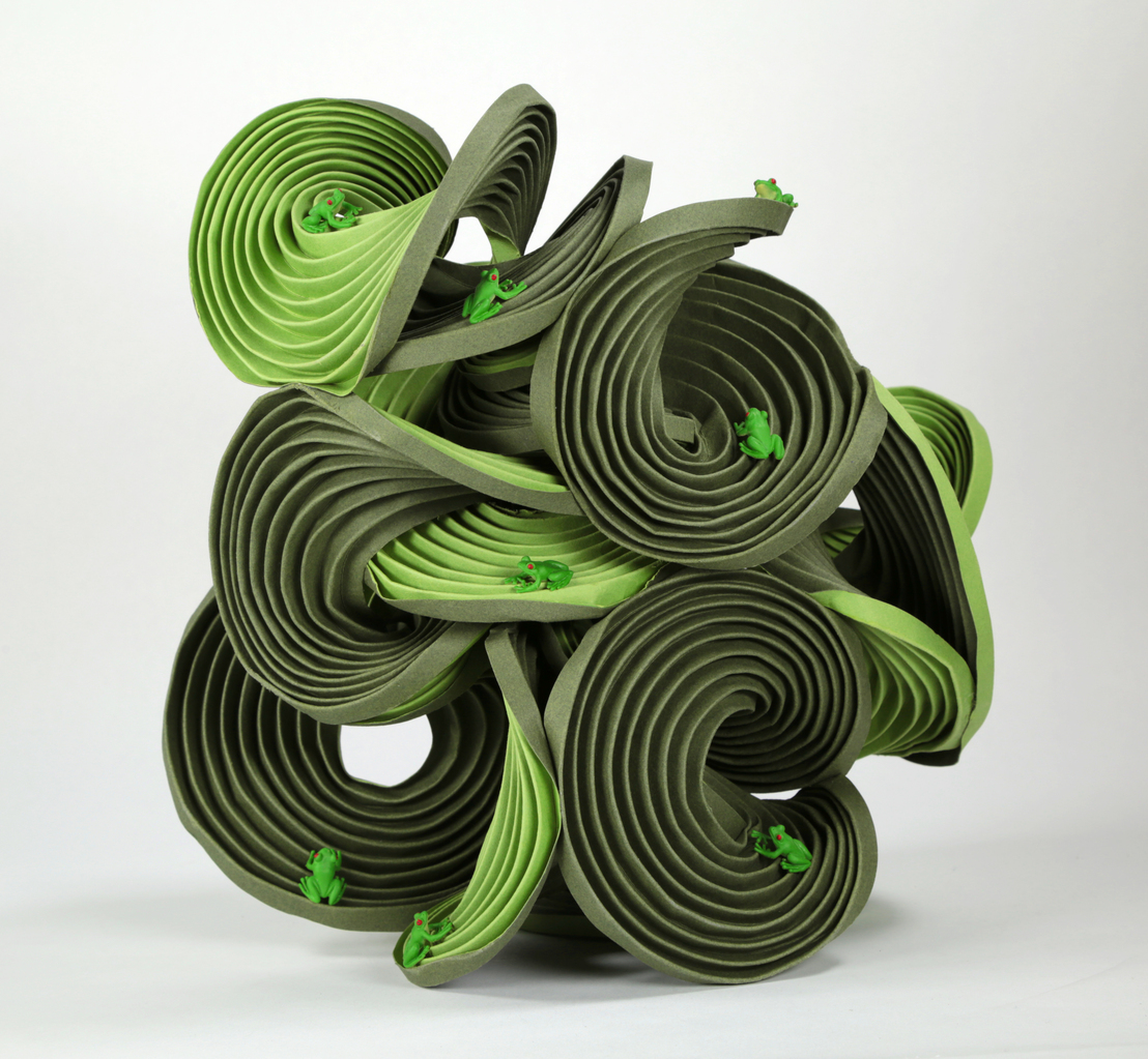 [0413F] Mi-Teintes watercolor paper and vinyl frogs, 14" × 11" × 11" high (2015):