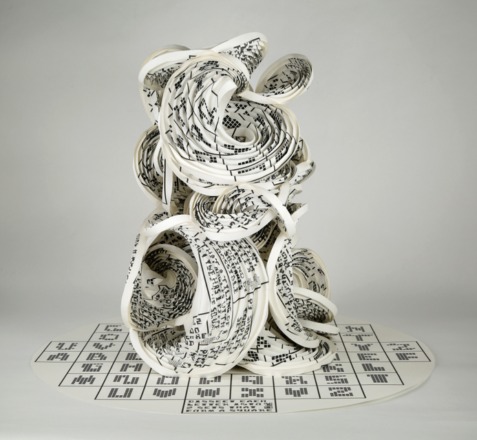 ” (2023), Mi-Teintes watercolor paper, 11" × 14" × 15" high: