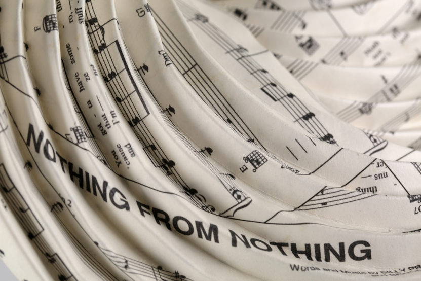 ” (2014), elephant hide paper, 11" × 11" × 13" high: