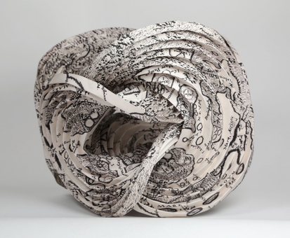 [0401] “Selenographia Revisited” (2014), joint work with Michael Benson, elephant hide paper, 8" × 8" × 8" high: