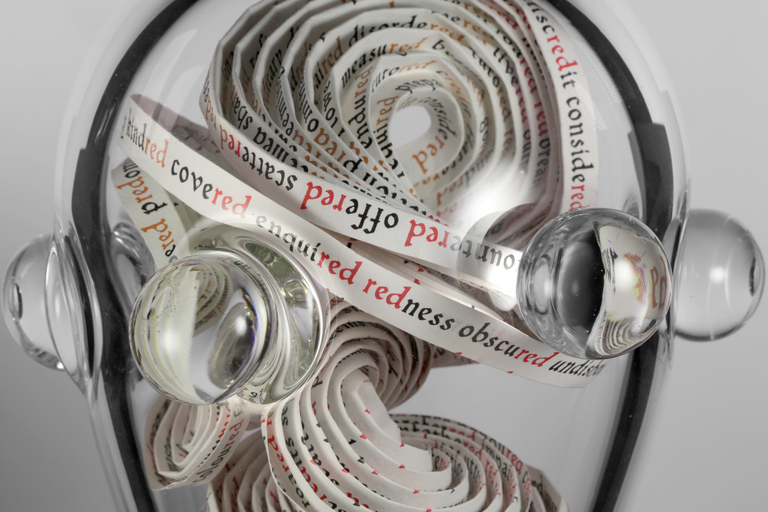 ” (2019), Mi-Teintes watercolor paper and hand-blown glass, 8" × 8" × 12" high: