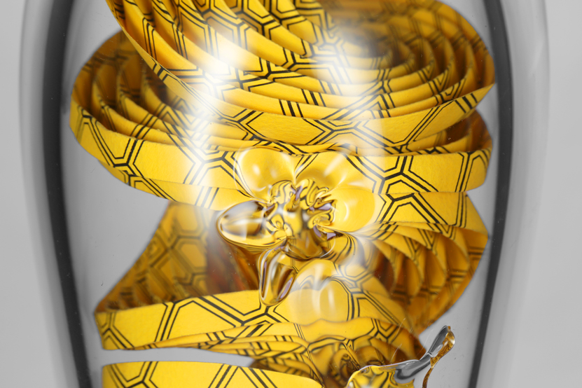 [H0381] “Glass Sunflower” (2017), Mi-Teintes watercolor paper and hand-blown glass, 5" × 5" × 13" high: