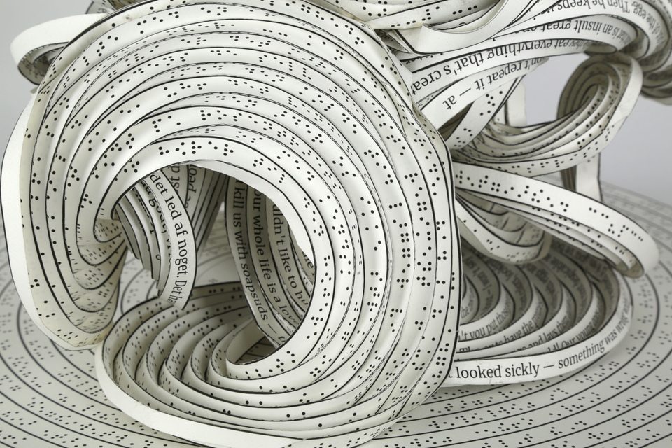 [0701] “Aphid Spirals / ⠁⠏⠓⠊⠙⠀⠎⠏⠊⠗⠁⠇⠎” (2023), Mi-Teintes watercolor paper, 12" × 15" × 15" high: (This one piece is not embossed as it is not meant to be handled.)