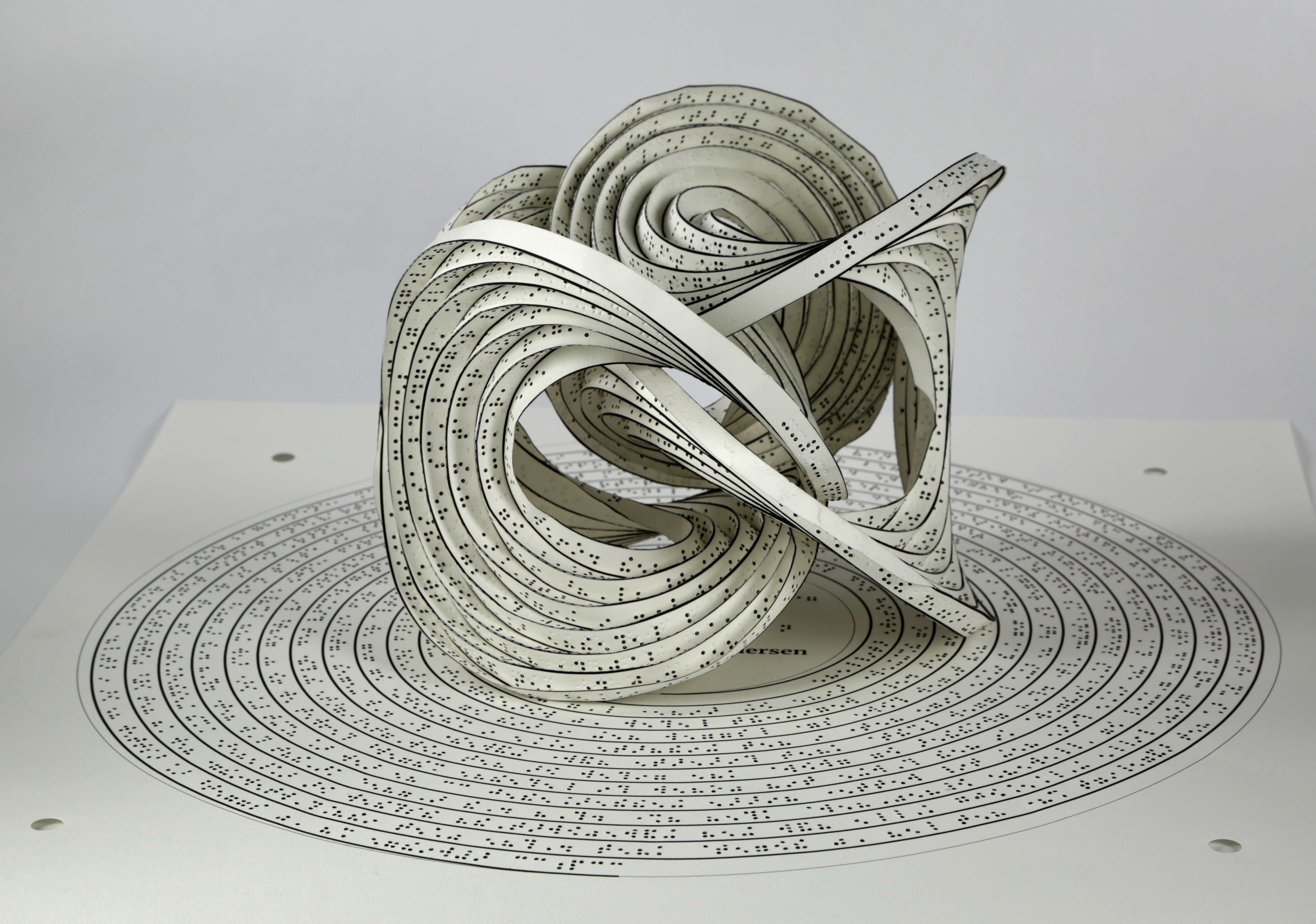 [0702] “Hugging Aphid Spirals / ⠓⠥⠛⠛⠊⠝⠛⠀⠁⠏⠓⠊⠙⠀⠎⠏⠊⠗⠁⠇⠎” (2023), Mi-Teintes watercolor paper, 8" × 8" × 10" high: