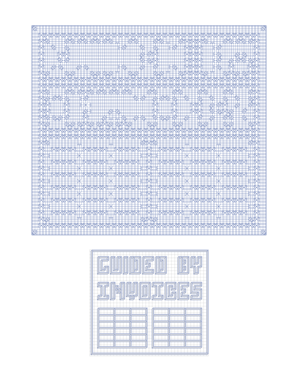 The Guided By Invoices print consists of the crease pattern (top)